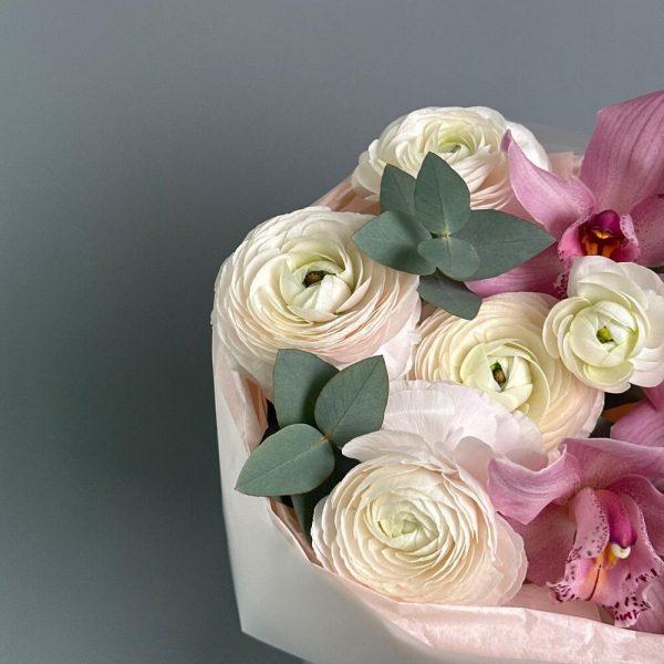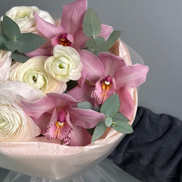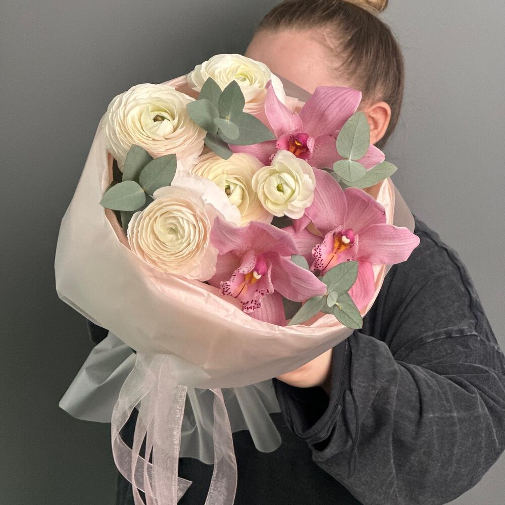 Букет с ранункулюсами и орхидеей в Серове